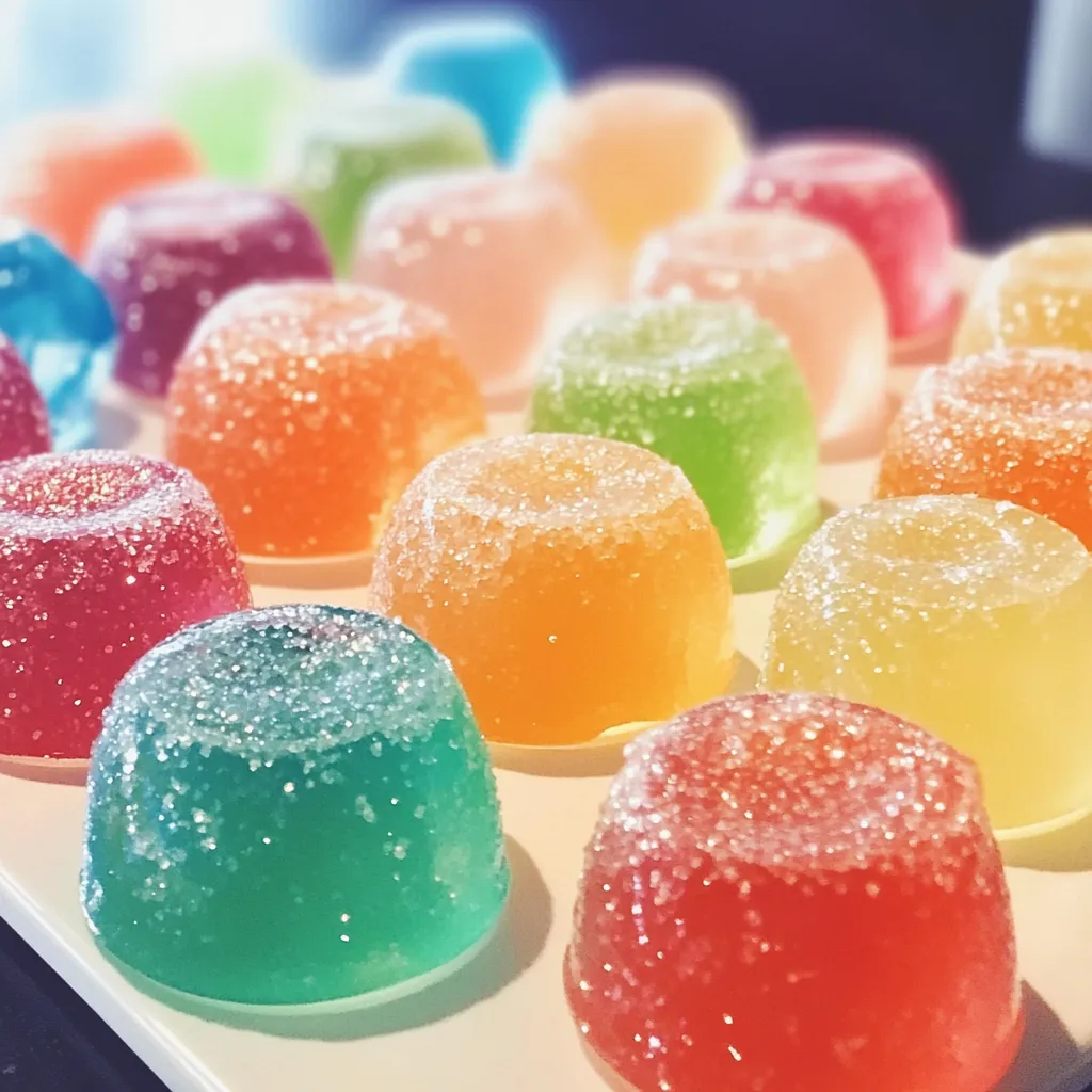Transforma estas golosinas de gelatina con alcohol en algo aún más impresionante colocando diferentes colores y formas en una bandeja sobre hielo picado para mantenerlas frías. Para ocasiones especiales, espolvoreo algunas con polvo de perla comestible o purpurina comestible para un efecto brillante que capta la luz bellamente. También lucen espectaculares servidas en copas de martini o de cava para una presentación elegante.